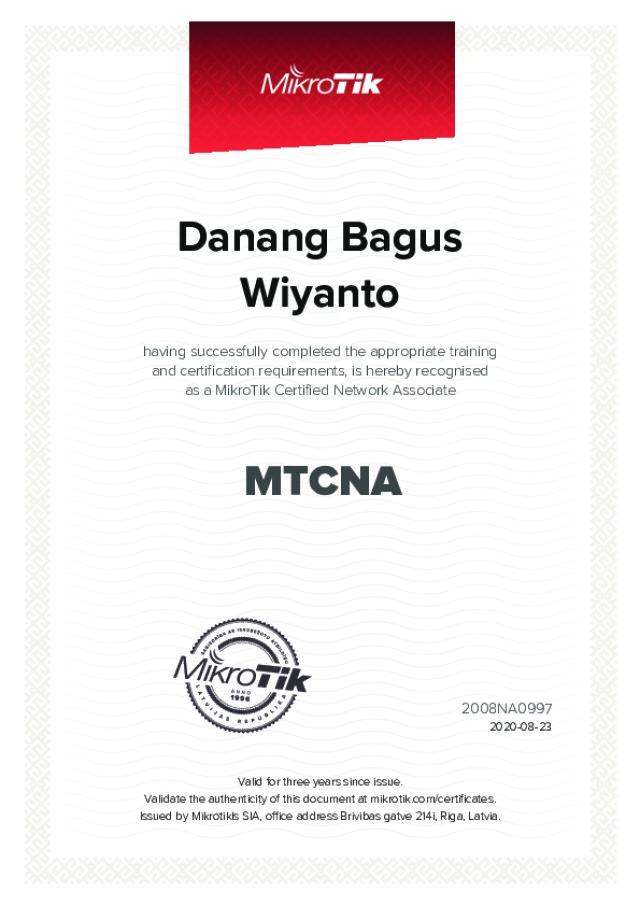- Dasar untuk Sertifikasi Lanjutan: MTCNA adalah prasyarat untuk mengambil sertifikasi tingkat profesional (MTCRE, MTCTCE, MTCWE, dll.), membuka jalan karir Anda sebagai ahli jaringan spesialis.